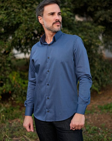 Ambas funcionam muito bem. O importante é o caimento: nem justo demais, nem largo. A calça chino traz leveza ao look, enquanto o jeans escuro mantém um ar urbano sofisticado.